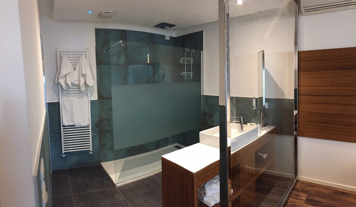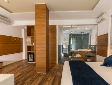Zimmer, 40m2 mit Doppelbett und Schlafsofa, großer Balkon mit Tisch und Stühle, direkter Meerblick, Schreibtisch, 40" Flachbild-TV, Minibar, Wasserkocher, digitales Schließfach, WLAN, Klimaanlage, Bad mit großer Dusche, separate Toilette, Bademantel, Haartrockner